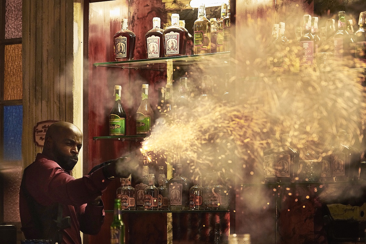 なんとも予想外の展開に、ますます「なにこれ……?」と頭の中はハテナマークだらけになるわけだが、この後、まったく前情報を入れていないと非常にビビる展開がしばらく続くことになる。中年スナイパーを殺した若手スナイパーを悪徳警官たちが狙い、そこで“とあるブツ”(完全にマクガフィン)を巡る内輪モメが起こってドンパチを繰り広げたかと思うと、さらに凶悪な女ボスとわんぱくな手下が登場して……という目まぐるしい展開が、一切の説明なくズンズン進行していくのだ。