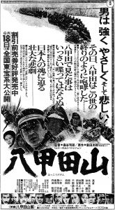 映画『八甲田山』は、公開時(1977年)にたった一回見たきりで、以後まったく見返すことがなかった。なぜこの堂々たる大作をリピーターとして見に行くことがなかったのか、まったくその理由が今もって不明だ。僕は多くの映画を万遍なくフォローするよりも、自分が良いと思った作品を2度3度と見返すタイプの人間なのに、この『八甲田山』に限って言えば、「1回こっきりの出会いに終わってしまっているのは何故だろう」と、今、自身に問うてみる。多分それは鑑賞時の並じゃない感動、ズシリときた重量感に圧倒されて、この時の一回限りのリアクションをも大事に記憶し続けたいと切に思ったからだったろう。