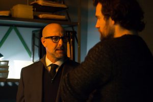 どう考えても心神喪失狙いか捜査を撹乱するための演技だろ……と思わざるを得ないのだが、そんなサイモンを見てもレイチェルは「何こいつ……?」みたいな表情で普通の質問をするだけなので、ちゃんとプロファイルの仕事せえや! と八つ当たりしたくなってくる。その様子を無表情で見つめるカヴィルもスーパーマン時の100倍ダウナーな雰囲気なのだが、そのぶんダダリオの瑞々しさやフレッチャーの全力狂人演技が際立っていて、結果的にバランスが取れているという奇跡的な状況が生まれていたりする。