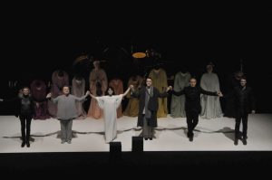 デスプラは作曲・指揮に加え、演出・映像を手掛けた夫人のソルレイと共に、台本も執筆。ロマン・ボクレー(バリトン)とジュディット・ファー(ソプラノ)の歌、ロラン・ストケールの語り、永田鉄男が撮影監督を務めた映像、雅楽の楽器編成を取り入れたアンサンブル・ルシリンの演奏で、川端康成の短編「無言」の世界を描いた舞台は、慎ましくも詩的な雰囲気に包まれていた。