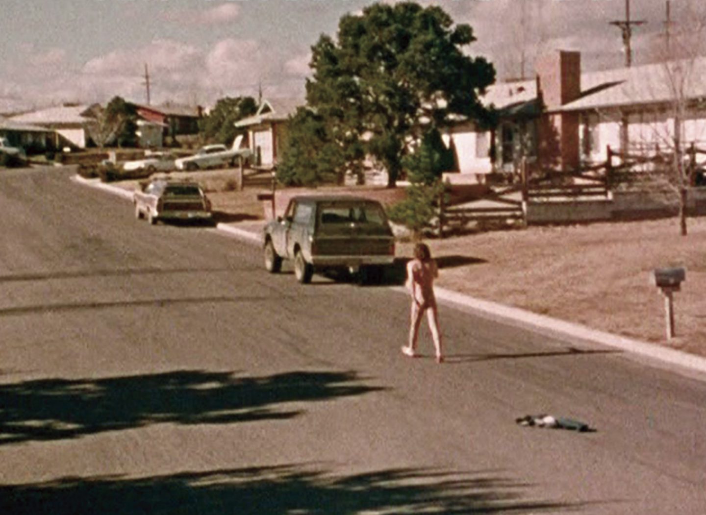 タオスにほど近いロス・アラモスの町の住宅街で、文字通り“全裸”になって歩く場面も、カメラが事前の打ち合わせ通りに離れたところで待っていたことは一目瞭然だ。「核兵器を作っている皆がいい生活をしている町」を全裸で闊歩することは、ホッパーにとって「象徴的なこと」なのだ。