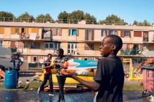 映画は2018年7月15日、サッカーW杯決勝戦の日、郊外からパリの中心部へ向かう少年たちの姿から始まる。友達と賭けをし、カフェのテレビで一緒に観戦し、一緒に勝利を祝う。シャンゼリゼを埋めつくした、喜びに沸く人々の顔。人種や階級を超え、全国民が一体となった熱狂。サッカーだけが人種や階層で様々に色分けされるフランスを一つにできる。移民出身の選手がいなければフランスは代表チームを組めないし、サッカー選手こそ移民の子供たちの英雄である。誇らしげな子供たちの顔。ラジ・リの様々な思いが伝わってくる優れたオープニングである。そこから舞台は再びパリ郊外に戻る。