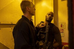 さて、そんな希少動物をボロい貨物船で運ぶことになるフランクだったが、なぜか同じ船で米情報部(CIA?)が、かなりヤバい犯罪者を護送するという。物々しい警備の中ドドーンと登場する殺人鬼ラフラーを演じるのは、ケヴィン・デュランド! ラフラーは任務中にテロリストに成り下がった元兵士で、しかも特殊部隊あがりというもっとも厄介な類の異常者だ。そんな男を、マッチョ系ではあるが淡~くエレガントなオーラを放つ名脇役デュランドが演じるということで、ニコケイとの初本格絡みに期待が高まる。