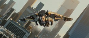 他にもデカい戦車が出てくるわ、空を自在に飛べるジェットパックのようなガジェットが出てくるわ、なんか「マッドマックス」みたいなシーンはあるわ、さらに美しいヒロインとのダンスのようなガンアクションはあるわで大忙し。