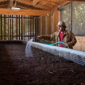 ふたりの師となるアランは、まずは土を生き返らせることを目指した。冒頭で触れた朱鷺のエピソードが示す通り、生物は生きた土にしか棲息しない。大地に潤いを与えるために、ミミズたちが生み出す廃棄物から液体肥料を用意する必要があったのだ。