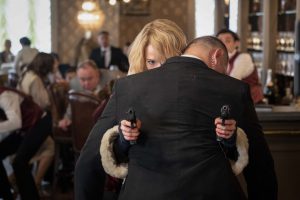 いくつもの“顔”を使い分けて男を欺き、体格で勝る男性相手に、スラリと長い腕で銃を構え、カモシカのような長い脚で蹴り飛ばす。レストランでの戦いでは、まるでバレエを踊っているかのような美しい身のこなしで、皿やフォークを武器に5分で40人あまりを倒すという、リアルかつ壮絶なファイティングシーンを見せつけてくれる。ちなみに、同シーンには先述のアラン・フィグラルツ師匠が敵役で出演しているのでお見逃しなく。