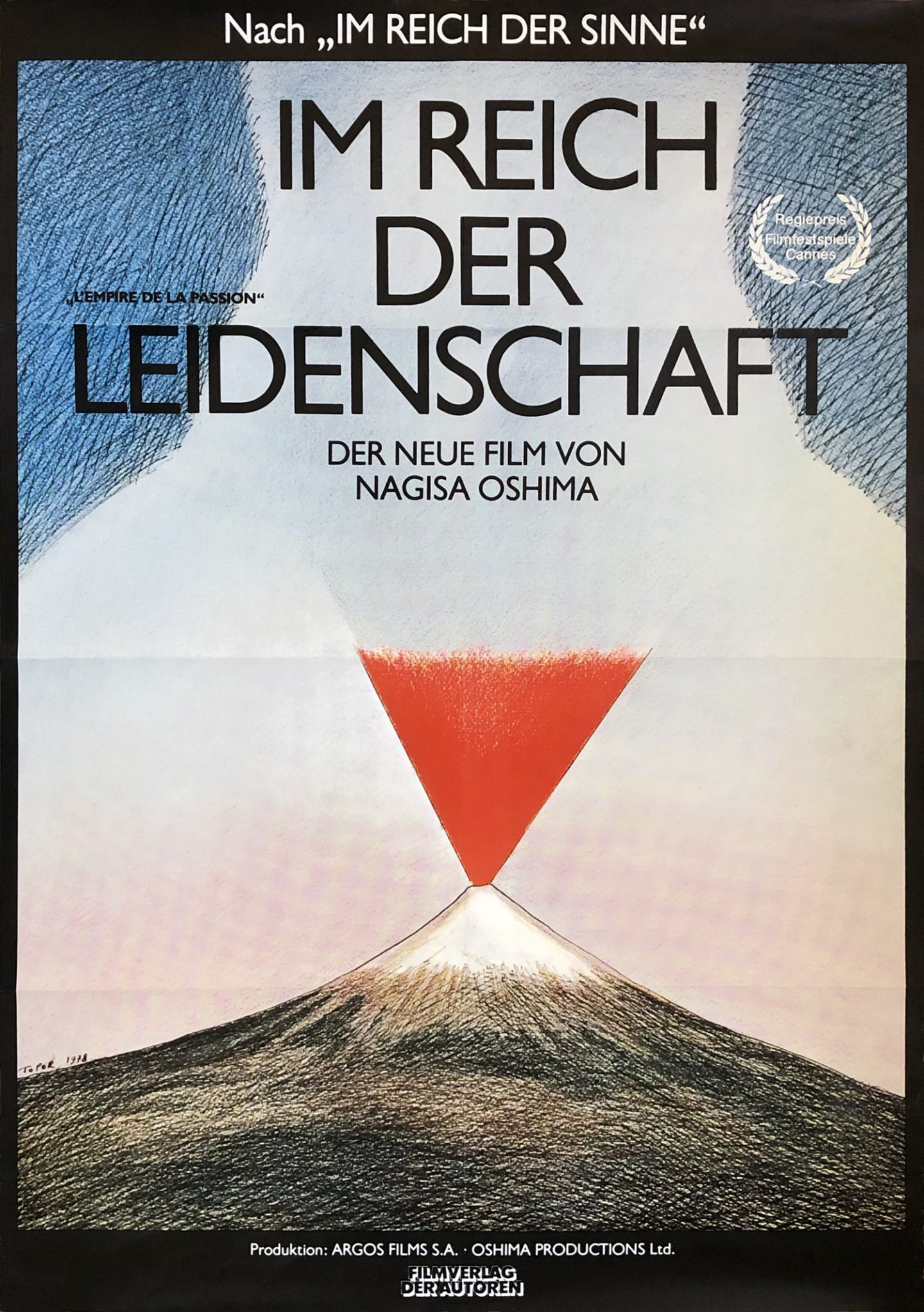 ※『愛のコリーダ』のポスターはスチール写真とイラストをそれぞれ大きく見せる2種類のバージョンが作られた。イラスト・デザイン・タイトル文字は東宝宣伝部で黒澤明作品などを担当していた益川進(1917~1992年)。
