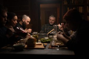 さて、この『失墜』はカナダ映画である。雪深い森の奥に集まった6人の男女。そこでは、ネットで有名なサバイバリストのセミナーが開催されていた。共同生活をしながら、環境破壊や経済問題によるカタストロフィ(災害、破滅)を生き延びる術を学ぼうというのだ。食料は罠で調達。獣の皮をはぎ、内臓をさばくことから覚える。“敵”の襲撃に備えて射撃訓練や爆弾作りにも取り組む。