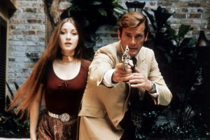 中でも強烈なインパクトを与えてくれたのが、ボンドがワニの背中をぴょんぴょんと歩いて窮地を脱する『死ぬのは奴らだ』のワンシーン。サン・モニーク島に赴き、二重スパイのロージー(グロリア・ヘンドリー)のハートも懐柔したと思った矢先、カナンガの右腕ティー・ヒーに捕らえられてヘロインの精製工場であるワニ農園に連れてこられたボンド。こともあろうか、ティー・ヒーに巧みに誘導されて周りはワニだらけの池の孤島に取り残されてしまうのだ。その時、ボンドがとった行動がまさかのワニ・ぴょんぴょんなわけだが、実際にワニに乗ったのはスタントとはいえ、本物のワニを使用して行われており、ワニが踏まれた瞬間、口をガーッと開けて今にもボンドに噛み付きかねないような緊迫感に溢れている。今なら動物保護とか人権団体とか様々なところからお叱りを受けること間違いナシの驚愕シーンだ。