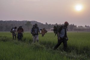 予告編を見ると“ベトナム戦争もの”といったイメージだが、主な舞台は現代のベトナム。ベトナム帰還兵の黒人4人組が、再びベトナムを訪れる。目的の一つは、戦時中に隠した金塊を掘り返すこと。もう一つは部隊のカリスマ的リーダーだったノーマン(チャドウィック・ボーズマン)の遺骨を回収して、アメリカの戦没者慰霊施設に埋葬することだ。彼らの旅が、兵士だった頃のエピソードと並行して描かれていく。
