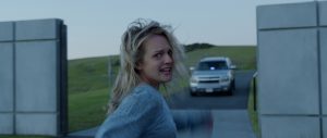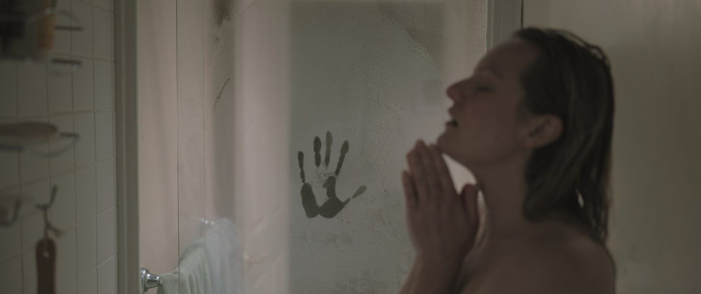 しかし、本作はこれまでの『透明人間』とは一味違う。それはセシリアという透明人間の被害者に焦点を当てているということ。エイドリアンの死の報せを受けた後、セシリアは見えない何かの気配を感じはじめる。その一発目が実に上手い。朝食の調理中、フライパンを火にかけ、包丁をテーブルに置き、眠っているジェームズの娘シドニーを起こしに行くセシリア。カメラは誰もいなくなったキッチンを映し続けるが、突然包丁が勝手に落ち、コンロの火は強火になる。