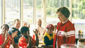 そこに集まってサッカーをしている子供たちは、半分ぐらいがブラック/ブラウンの有色人種。中には経済的に困窮している家庭の子供もいる。ブリット=マリーが出会う大人たちも、街の「なんでも屋」的存在の有色人種の親子であるとか、ほぼ目が見えない元サッカー選手の女性であるとか、スウェーデン社会においてはおそらくマイノリティとされる人々だ。日本で暮らしていて、とにかく庶民にお金と暇が行き渡っていないのが由々しき問題だと考えている身としては、この映画で社会階層としては決して恵まれているほうではない人々も公共施設を利用し、サッカーという余暇活動を通してコミュニティを築いている様子に、やはり“社会の豊かさ”を感じずにはいられない。