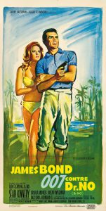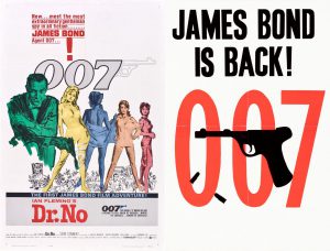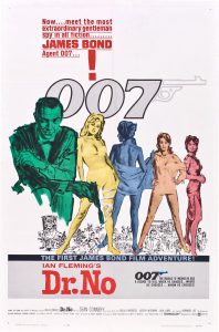 栄えあるシリーズ第1作のポスターには「最初のジェームズ・ボンド映画!」、そして「イアン・フレミングのドクター・ノオ」とある。これは、イギリスでは1953年からすでに9冊も刊行されていたイアン・フレミングの小説によって「ジェームズ・ボンド」の名が知れ渡っていたこと、そして原作第1作「カジノロワイヤル」が1954年にアメリカCBSでテレビドラマ化されていたことに対応している。まさに“本家本元”“正真正銘”のボンドここにあり、と高らかに表明していたわけだ。