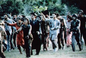 三部作に直接的な繋がりはないものの、『ナイト・オブ~』で認知された人を襲う死体=ゾンビの存在が『ゾンビ』で花開き、テン年代を代表する人気ドラマ『ウォーキング・デッド』シリーズ(2010年~)にまで連なるゾンビ像を確立。『ゾンビ』があまりにもエポックメイキングな作品なので知名度はイマイチかもしれないが、ゾンビ映画を“ちゃんと怖いホラー映画”に昇華させた『死霊のえじき』こそ「ロメロの最高傑作」と多くのゾンビ映画ファンが絶賛する。