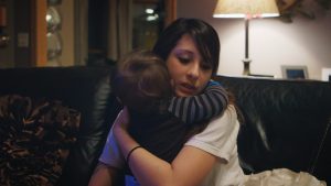 キアーを通して、スケボー仲間同士でも感じざるを得ない人種間の溝も見えてくる。ホワイトトラッシュを引き合いに出して「苦労してる白人もいる」と言う仲間もいるが、低所得の黒人家庭に生まれた者の苦しみは別次元だろう。ザックも彼女との間に子どもを授かるがアルコールに溺れ堕ちていき、キアーと徐々に疎遠になっていく気まずさも描かれる。幼い子どもはどんどん成長していくのに、世間が押し付ける“正解”を拒絶し現実を受け止められないザックの姿は、見ていてかなりつらい。そして監督であるビンも、自らのトラウマと対峙する。継父から受けた暴力はビンの心に暗い影を落としていて、カメラの前で母親と本音をぶつけ合う。