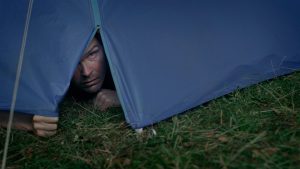 キャンプに出掛けた夫婦が夜明けに、3人組のサイコキラーと彼らが飼っている獰猛な犬に殺されます。しかし、殺されたと思ったら夜明けのテントの中で目が覚める。夢? と思ったら、またあの3人と犬が現れ夫婦を襲う。これが繰り返されていく。そう、夫婦はこの恐怖が繰り返される時間逆行のループに巻き込まれるのです。