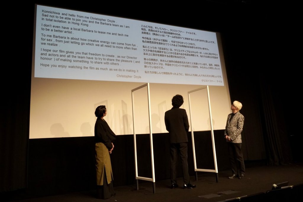 『ばるぼら』舞台挨拶 左:二階堂ふみ、中央:稲垣吾郎、右:手塚眞