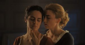 この映画の時代設定は1770年とされている。史実としてこの19年後にはフランス革命が起こり、王政が倒されることになるわけだが、市民社会の本格的な到来は遥か遠く、とりわけ女性の人権や自由意志はまだまだ軽んじられていた時代だ。主人公のマリアンヌ(ノエミ・メルラン)は結婚するつもりのない画家の女性だが、彼女がそうした生きかたを選ぶことができるのは、父親が画家として名を成していたから、つまり生まれによるところが大きかったに違いない。