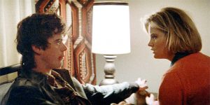長距離ドライブで眠気に襲われていたジム青年、暇つぶしと善意で濡れネズミ状態のヒッチハイカー、ジョン・ライダーをピックアップしたのが悲劇の始まり。4年の寿命で2019年に死んでしまったレプリカントのロイ・バッディと同じく、現実世界でも2019年に75歳の生涯を閉じたルトガー・ハウアーが“あのとき”のロイのように雨に濡れての登場がたみゃらん。