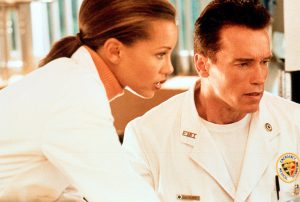 シュワルツェネッガー作品は1991年の『ターミネーター2』(以下『T2』)以前・以後という分類ができるのではないか、と考えることがある。前期シュワルツェネッガーは『コマンドー』に『プレデター』(1987年)、そして『レッドブル』(1988年)と、何しろあまりに無骨なアクション・スター路線を驀進していた。どちらかといえば、バカな中年男性やバカな中高生がメインターゲットであったこの時期、しかし『ツインズ』(1988年)などのコメディにも手を伸ばし、上記以外への観客層の拡大を周到に狙ってもいた。そしてついに殺人マシーンとしての有無を言わさぬ暴力性と、そしてある種間抜けなアイドルとしての可愛げという、相反する魅力を同時に体現するという離れ業をやってのけた。それが『T2』だった。