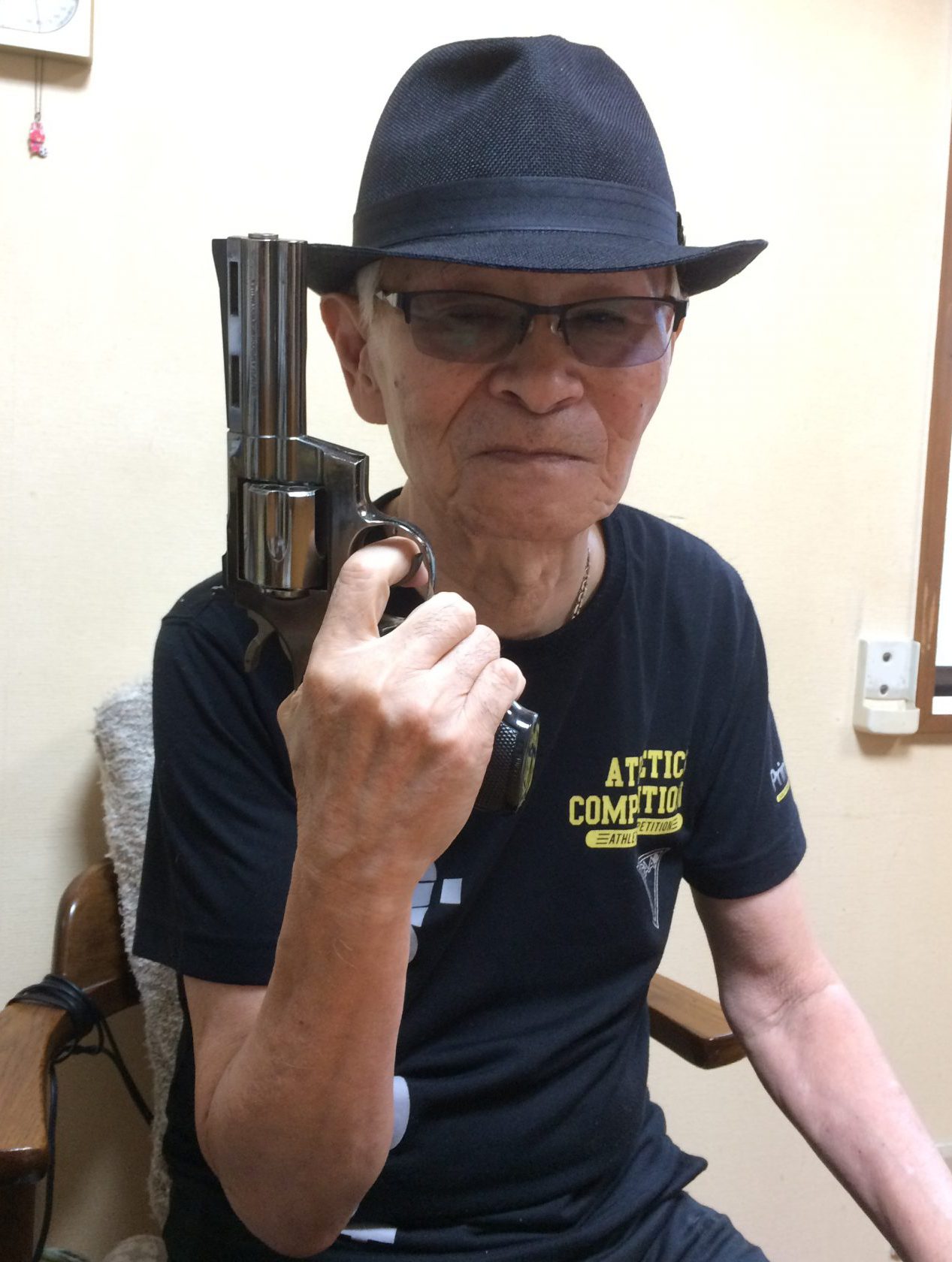 『タイトロープ』日本版ポスターに使用された“マグナム”と檜垣紀六氏近影(撮影:セルジオ石熊)