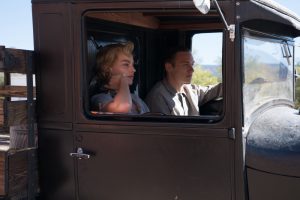 そしてユージンの平凡な人生とのギャップを強調するかのように、アリソンと元パートナーの強盗シークエンスは過剰に色鮮やかなゴージャスさで、とてもスタイリッシュに描かれる(なにしろクラシックなドレスを着たブロンドヘアーのマーゴット・ロビーである)。また、立ちこめる“砂ぼこり”も重要なファクターとなっていて、人が歩けば身体を汚し、車が通れば視界を遮る乾いた砂が田舎町の絶望感を強調。そしてあらゆる生物の生活を根こそぎ奪わんとする巨大な砂嵐(ダストボウル)が人間の無力さを示しつつ、ドラマチックな逃避行物語の起爆剤としても機能している(このあたりもマリックみがある)。