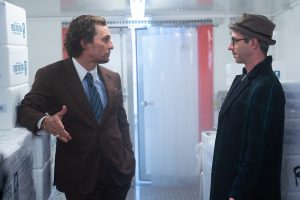 2019年製作の現代劇なのに“ハッパで億万長者”とは少々古くささを感じるし、リッチー自身が一攫千金を狙うガキよりもセミリタイアを計画する成金の気持ちのほうが分かるようになったのか、まるで『ロック、ストック~』のキャストを反転させたような設定でもある。そこで効いてくるのが、私立探偵フレッチャーが主導する“会話劇”スタイルだ。彼が、想像や誇張が混じった“脚本”をミッキーの部下レイ(ハナム)に語る形で物語が進行することにより、ヤクザ者同士の“仁義なき戦い”要素よりも、誰が何を企んでるのか? というミステリー要素でぐいぐいと興味を引っぱっていく。