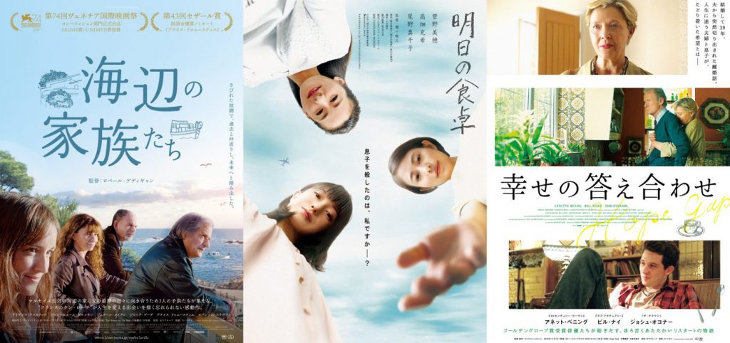 『海辺の家族たち』© AGAT FILMS & CIE – France 3 CINEMA – 2016/『明日の食卓』©2021「明日の食卓」製作委員会/『幸せの答え合わせ』© Immersiverse Limited 2018