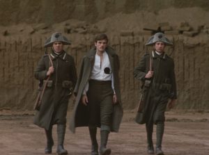 丘陵地帯の高所に陣取ったオーストリア軍機関銃陣地への突撃を命じるレオーネ将軍が無能の極みですが、戦車もなく大量の野砲も持ち込めない当時の山岳戦においては、生身の歩兵による突撃しか策がなかったのも、ある意味事実なのです。その生身の歩兵にとって、敵の陣地前に張り巡らされた鉄条網が突破困難な恐怖の障害物であったかも、ここで描かれる通りです。