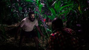 中でも、サブ主役と言えるゴム農園主クリアッチャンのパートでは、翌日に予定されている娘の婚約式で出すご馳走について、えんえんとグルメ話が続く。ヤシ酒入りパンにアッパム(米粉パン)、水牛カレーにタマリンド風味の魚のカレー、ヤム芋のヨーグルトあえ、そして水牛ローストのココナツ・スライス添え……。食用にする水牛を追う話だけあって、食べ物は次々と登場し、女性たちがタピオカをゆでるシーンもある。タピオカはタピオカ団子にするのではなく、ライスのように主食としてカレーと共に食べるのだ。食欲、性欲、金銭欲、所有欲など、あらゆる欲望が小さな村に渦巻いて、牛を追うことでむき出しになるのがすごい。