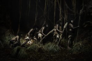 そして圧巻は、陽が沈んでからの夜のシーンである。闇の中、たいまつや懐中電灯の光に浮かび上がる山の斜面を、水牛を追う男たちが木々を縫って疾駆する。一体どうやって撮ったのか、と唖然とするカメラワークの連続に目を奪われる。水牛も山中を飛ぶように逃げるのだが、実はこの水牛は本物ではなく、アニマトロニクスという手法で登場させたものだという。パンフレットの中に、その手法をチラリと明かした画像があるが、ぜひメイキング映像で詳しく見てみたいものだ。