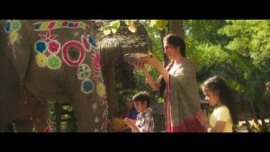 タイと言えば、本作の象の保護区シーンは、ほとんどがタイで撮影されたという。象たちも名演技を見せてくれていて、特に村に戻った直後の、ラージと象たちの交歓シーンは圧巻だ。象たちのリーダーであるボーラは、1メートルを越す巨大な牙を持つ雄象だが、10年ぶりに会ったラージを確かめ、互いに敬意に満ちた挨拶を交わす。実に、一幅の絵になるシーンである。ディディ役の雌象や子象たちも演技力抜群で、スゴ腕の象使いがついていてくれたものと思われる。