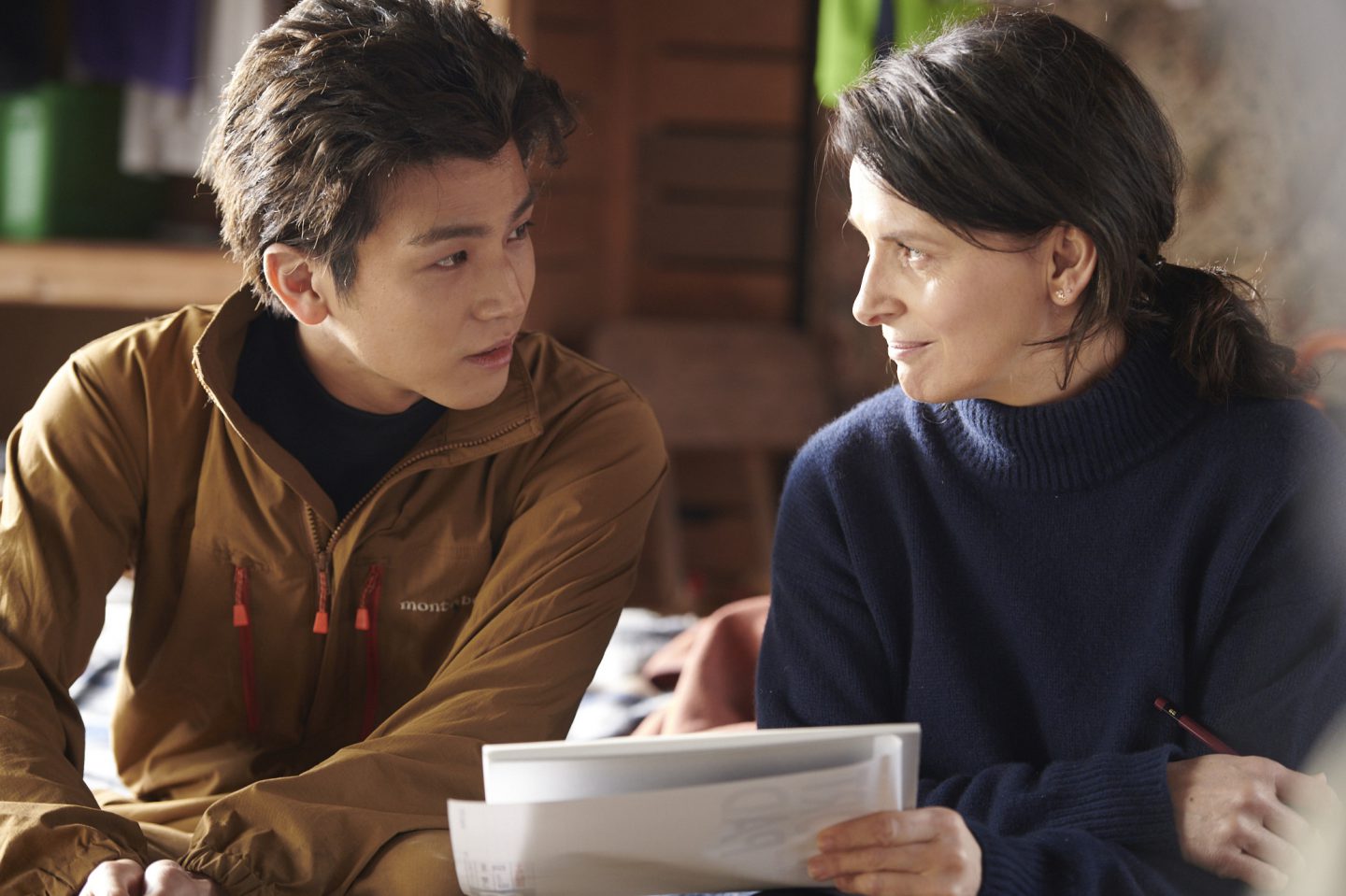 公開順は前後するが、『Vision』から説明していきたい。奈良・吉野の山林に暮す山守の智(永瀬正敏)。彼は予言通り、フランスからやって来たエッセイストのジャンヌ(ジュリエット・ビノシュ)との運命的な出逢いを果たす。ある日、突然森の奥に鈴(岩田剛典)という謎の青年が現れる。彼が一体どこから来たのかは、まるで分からない――。