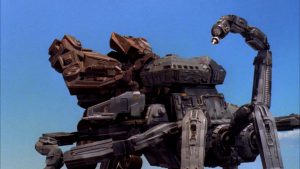 がっぷり組んで戦う人型vsサソリ型ロボの一騎打ちなどは、あきらかに『パシフィック・リム』(2013)がやりたかったことはここにあったのだと実感できる。アレン得意の、巨大ロボットなどを重量感を感じさせながら動かす匠の技が堪能できる1本だ。