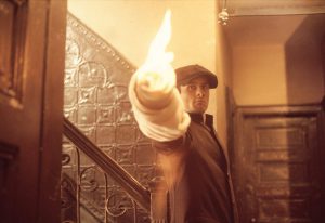 マーロン・ブランド演じるヴィトー・コルレオーネの姿が映し出される映画冒頭。撮影監督のゴードン・ウィリスは彼の登場を印象付けるため、頭上から照明を当てることで、目が影で見えないという奇抜な映像を実践した。その技法がいかに画期的なものであったかは、現代の感覚では分かりづらいのだが、数多の作品で模倣され、教科書的なライティングとなっていることから推し量れるだろう。
