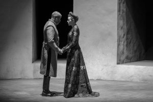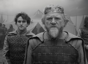 本作は全編モノクロで撮られていて、予告映像の時点では昔風にしているのかなと思っていたが、始まってみると全く違っていることに気づいた。まず、とてもクリアでシャープな映像であり、全くノスタルジックではなかったこと。そして、美術も当時の再現ではなく抽象化した装置の様相で、たとえば城ですらも役割を最低限表現したオブジェクトのようになっていて、まるでコピー・ペーストできるゲームの背景みたいだったことに驚いた。