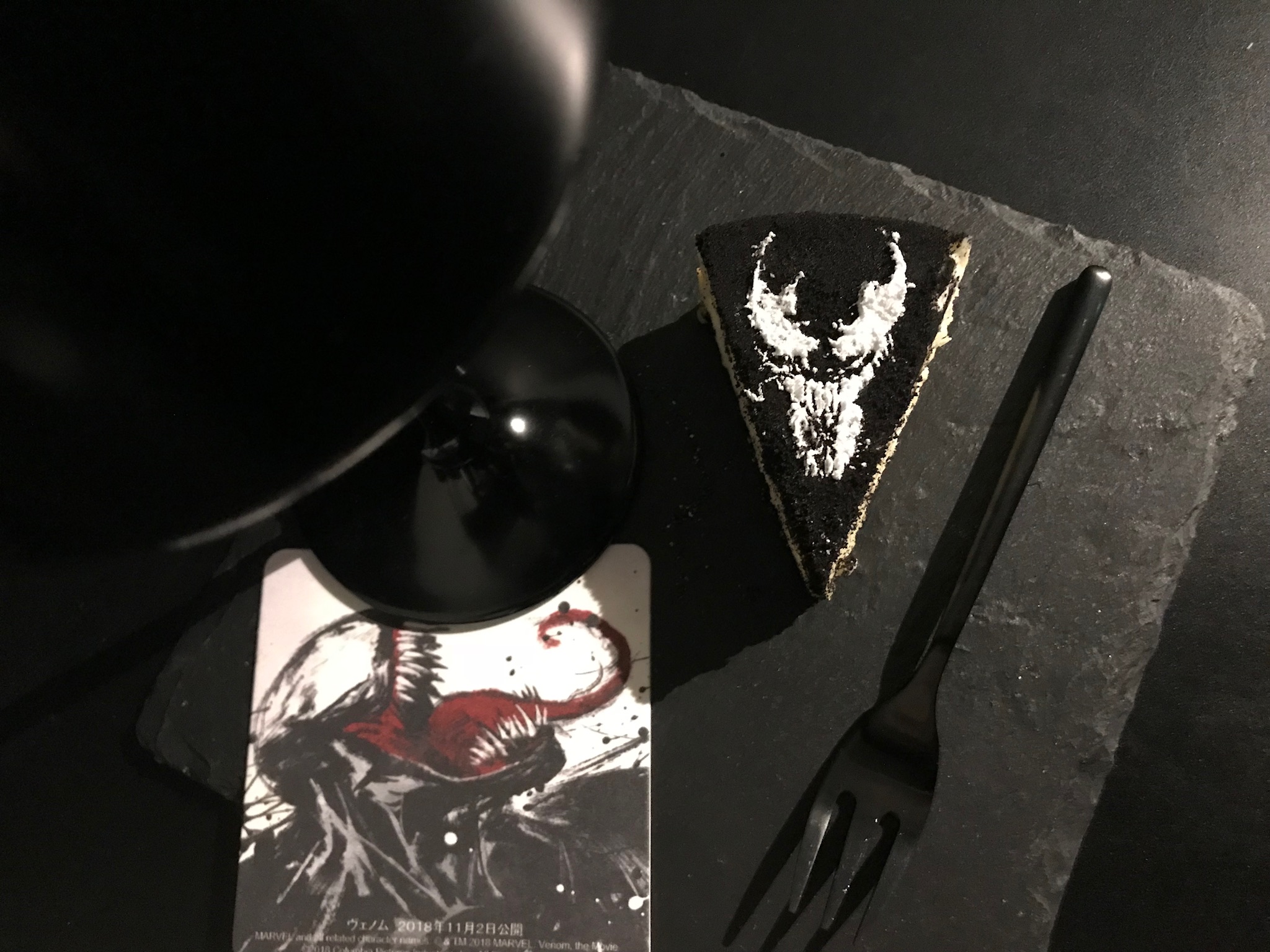 『ヴェノム』コラボメニュー「VENO-CAKESET」 / ワインに合うブラックな大人なベイクドチーズケーキ※現在は提供終了しています。