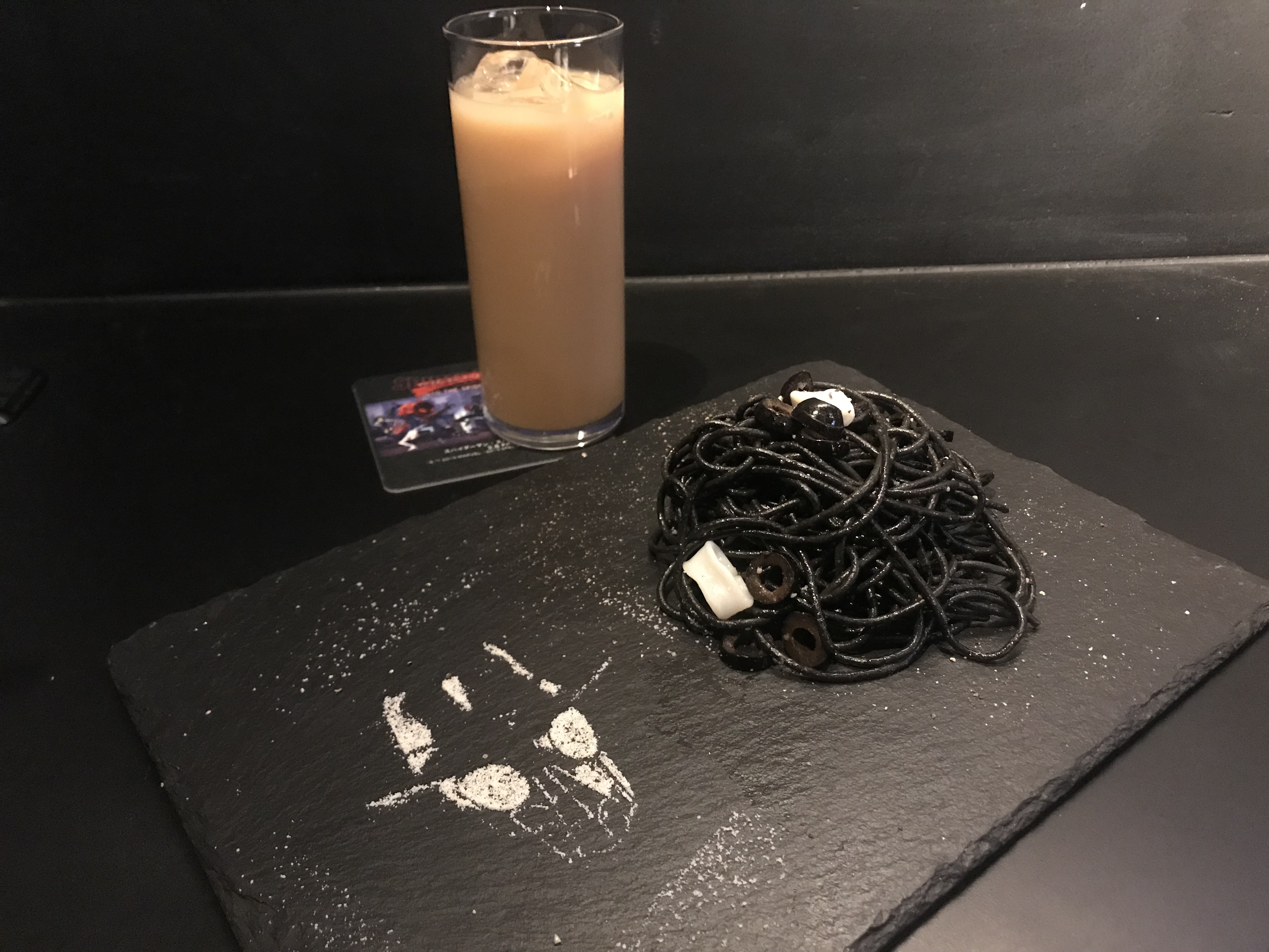 ノアールモチーフのブラックパスタとノアールの好物ミルクセーキがセットの「ノアール・パスタセット」(1,500円)