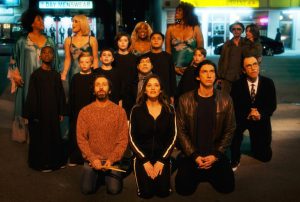 『アネット』の原案は、スパークスが書いたロック・オペラだという。映画はまず冗談めいた前説から始まり、音楽スタジオへとシーンが移るのだが、そこにはエンジニアとしてカラックスが、録音ブースにはスパークスの二人がいる。スパークスとコーラス隊がスタジオを飛び出すと、アダム・ドライヴァーら出演陣が現れ、歌いながら街を練り歩く。