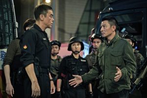 さらにアンディの甘さを期待する方にも朗報! 今回も前作のように、アンディと恋人との恋愛模様もあります。前作ではソン・ジアがアンディの恋人を演じましたが、事件に巻き込まれるか弱い女性キャラという印象でした。しかし、本作の恋人は違います。今回、ニー・ニーが演じるアンディの恋人はテロ対策ユニットのリーダー。劇中、香港が終了してしまう爆破テロを阻止するため、ラウ・チンワンがギョロ目を涙でいっぱいにしてドン引きするような非情な作戦をプランニング。さらに、銃撃戦ではクイックに的確な指示を出し、タクティカルなシューティング・スタイルで敵を確実に射殺する、という土方歳三チックな鬼のリーダーシップを披露。あまりのカッコ良さに、このキャラを主役にしたスピンオフを作って欲しくなるはず!