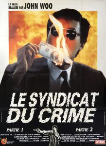 一部の映画祭上映を除いては一般公開されなかった『男たちの挽歌』の、アメリカ版ポスターは1996年のビデオ発売時に作られたのが最初のようだ。すでに『狼/男たちの挽歌・最終章』が話題になった後なので、チョウ・ユンファ単独主演のアクション映画のようなデザインとなっている。また、フランスでは『男たちの挽歌 II』と抱き合わせで1993年に連続公開された。題名も「犯罪シンジケート1・2」と、なんだかチャールズ・ブロンソンのアクション・シリーズ物みたいだが、マークの名場面一発で2本の映画を象徴し、チョウ・ユンファがとにかくカッコいいことだけは見事に表現されていた。