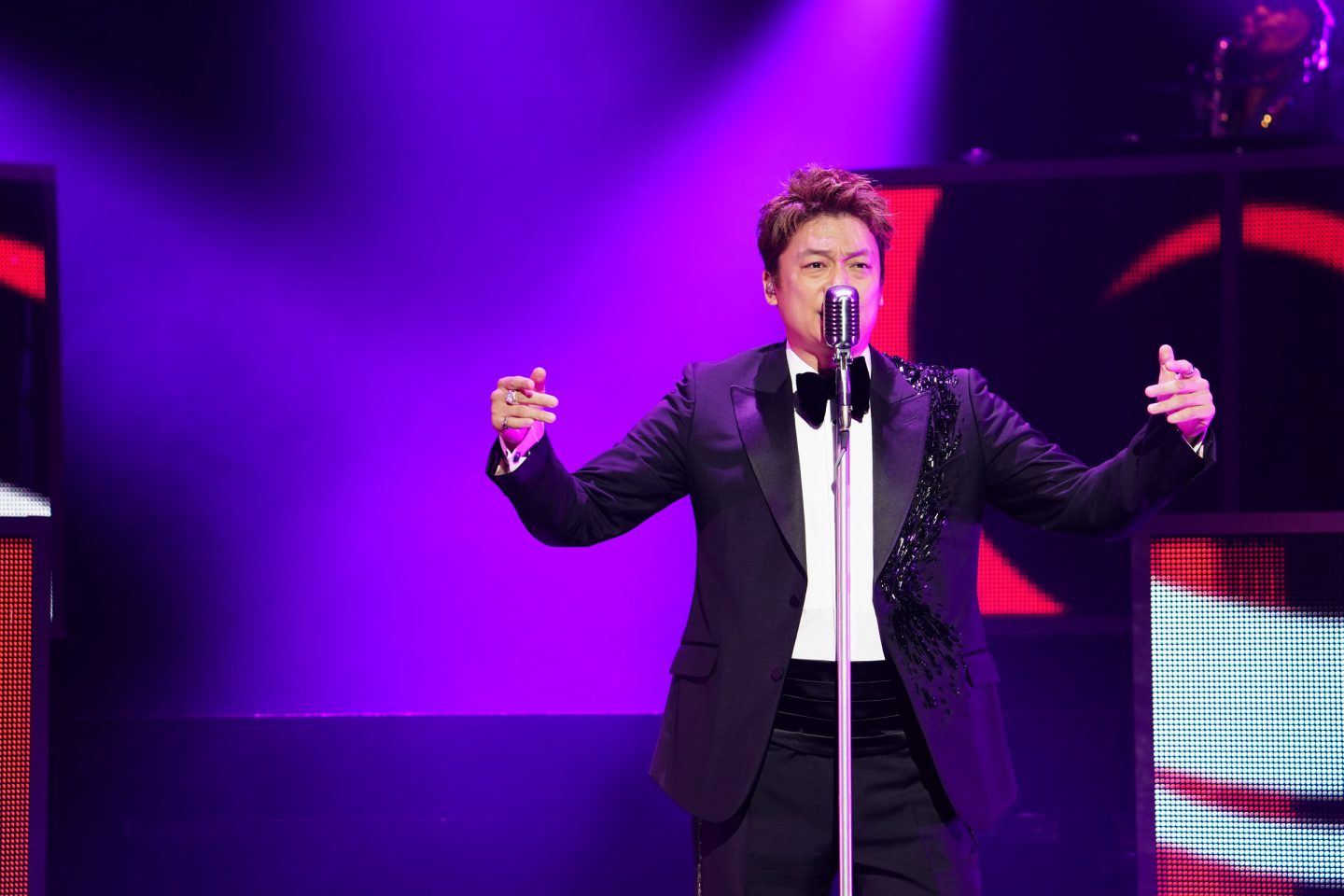 幕が上がると、グラスを手にした香取慎吾のシルエットが浮かび上がる。聞こえてくるのは、スウィングのリズム。アルバムのタイトル曲である「東京SNG」で始まるショーは、まさにSHINGOがSWING。トロンボーンの村田陽一率いる11人のビックバンド、3名のコーラス、6名のダンサーという大編成と共に、タキシード姿で慎吾が歌って踊る姿には、圧倒的な華がある。
