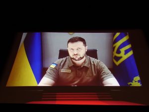 ゼレンスキー大統領の中継、ごく一部がスタンディングオベーション
