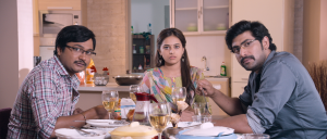 それが最も皮肉な形で現れるのが「アンタークシャリ」を巡るやりとりかもしれません。朝帰りをしたクッタンに、アジュが何をしてきたのかとしつこく尋ね、クッタンがふざけて「アンタークシャリさ!」と答えるシーンがあります。アンタークシャリとは、昔からインドで行われている歌のしりとりです。二手に分かれた競技者の一方が、歌(大抵が映画の挿入歌)を数小節歌い、相手方はその最後の音節から始まる別の歌で応酬するという遊戯で、二人でもできますが、大抵は大家族の集まりで老若男女がそれぞれのレパートリーを持ち寄って賑やかに行われます。少し古めのファミリー映画には時々これが登場し、見せ場の一つとなっていることがあります。けれども、本作中で模索される人と人との関係性は、アンタークシャリに象徴される旧来の家族観とは随分違ったものなのです。タミル語映画をはじめとした南インドの映画界では、大家族礼讃の価値観に基づいた作品がまだまだ主流です。けれども本作や、あるいは2015年の東京国際映画祭で上映された『OK Darling』のような、それとは違うあり方を模索する作品が、これからは徐々に増えてくるようにも思えます。アンタークシャリは、本作の終盤でもう1回言及されますのでお聞き逃しなく。