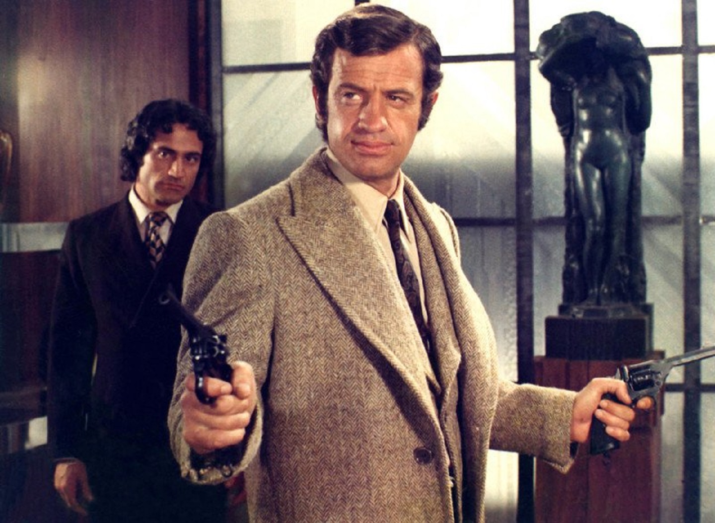 初期のベルモンドのアクション映画はあまり銃を使わなかったが、アメリカの『ダーティハリー』(1971年)の大ヒットなどもあって、この頃は世界的にアクション映画での銃撃シーンが目立つようになっていた。