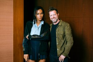「『ブレット・トレイン』の中に、もしこんな女子高生がいたらカッコいいな」というコンセプトでスタイリングした衣装で登場したアヴちゃんとリーチ監督は、初対面ながらさっそく意気投合。ふたりのクリエイター対談を余すところなくお届けする。
