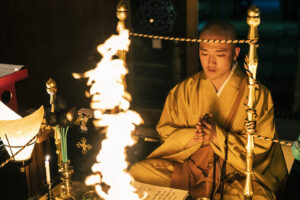 もちろん、彼の実家です(笑)。護摩炊きとかお経とか全部、本物なんですよ。衣装も彼だけシチュエーションに合わせて4着くらい変えてます。
