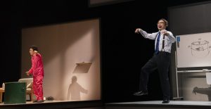 「二人しか出ていないのに、顔を合わせるのは一度だけ。実は演劇的にかなり高度なことをしているんです」(三谷)というように、非常に難度の高い二人芝居ながら、全く違和感がない。さらに暗転した後は二人が入れ替わっている。7年前のパルコ劇場での初演も観ているが、今回の日本青年館ホールは段違いにステージも客席も広い。だが、この大箱の空気を一瞬にして緊迫させ、笑わせる二人の演技の自由自在さ、そして三谷脚本の構成の妙には唸らされる。いや、実際には現場で大笑いしたのだけれど。