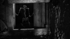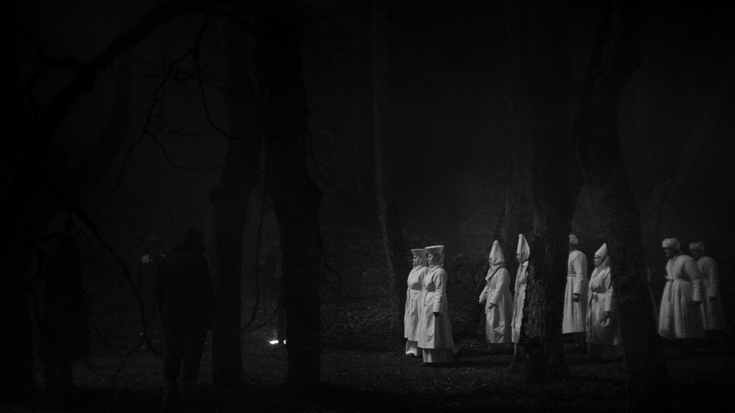 1カット1カットが、いや、ひとコマひとコマが芸術として成立しているこの絵はなんだ。深い深い暗闇にさらに黒のスポットライトを当てたような心の底に響いてくる重低音。間抜けな使い魔クラット登場のシーンの恐怖のおとぼけ。ドン引きしながらも惹きつけられる登場人物の顔のアップ。森の中の少女はくっきり浮き出ているのに、季節がわからないほど真っ白に飛ばされてしまった木の葉。モノクロでできることを全てやり尽くしている。