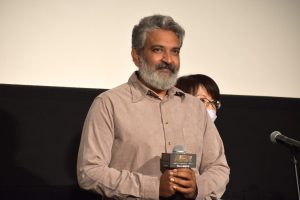 「もう5年ほど経つでしょうか、前回日本に来たときの思い出をインドに持ち帰り、私の二人のヒーロー(NTR&チャラン)に伝えました。日本の皆さんは愛情を持って意思表示してくれます。それを、この二人にも見せてあげてほしいのです。この『RRR』は友情に関する映画ですが、彼ら二人は実生活でもとても仲がいい。皆さんに約束できることとして、10分ごとに泣いたり笑ったり、なんらかの感情を掻き立てる経験ができるはずです。映画を観終わる頃には、この二人のことをとても愛しているでしょう」